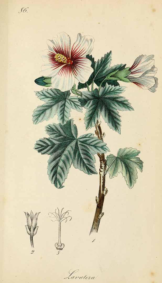 MalvaceaeMalvácea endémica canaria presente en todas las islas excepto en El Hierro y taxonomía algo discutida, ya que es frecuente que se identifique como Lavatera acerifolia Cav., Malva acerifolia (Cav.) Alef. o Saviniona acerifolia (Cav.) Webb & Berthel. Se puede identificar fácilmente por sus grandes flores de cinco pétalos y color malva o rosa, con el centro de la flor de color más intenso y el exterior de los pétalos casi blanco. Hay dos subespecies, L. acerifolia var. acerifolia en La Palma, La Gomera, Tenerife y Gran Canaria; y la L. acerifolia var. hariensis en Fuerteventura y Lanzarote, que está en peligro de extinción.